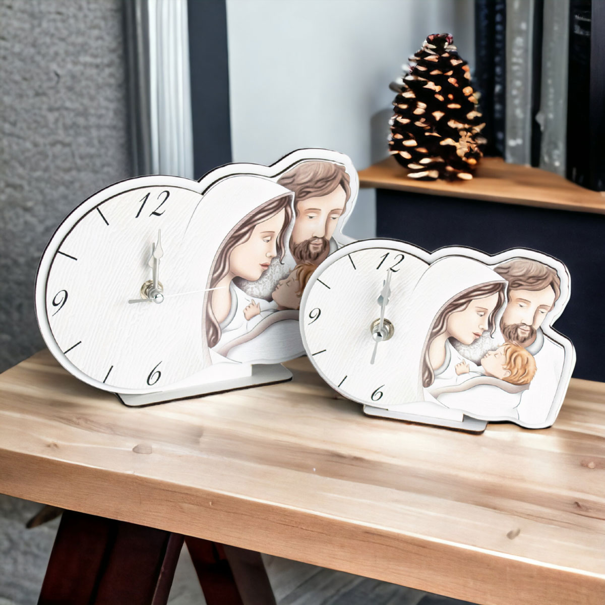 Scegli la bomboniera orologio Sacra Famiglia in legno laccato se desideri un ricordo utile, di qualità e coerente con la simbologia della tua cerimonia. Acquista ora e rendi speciale comunione, cresima, matrimonio o battesimo con una bomboniera religiosa Made in Italy che parla di famiglia, tempo e gratitudine.