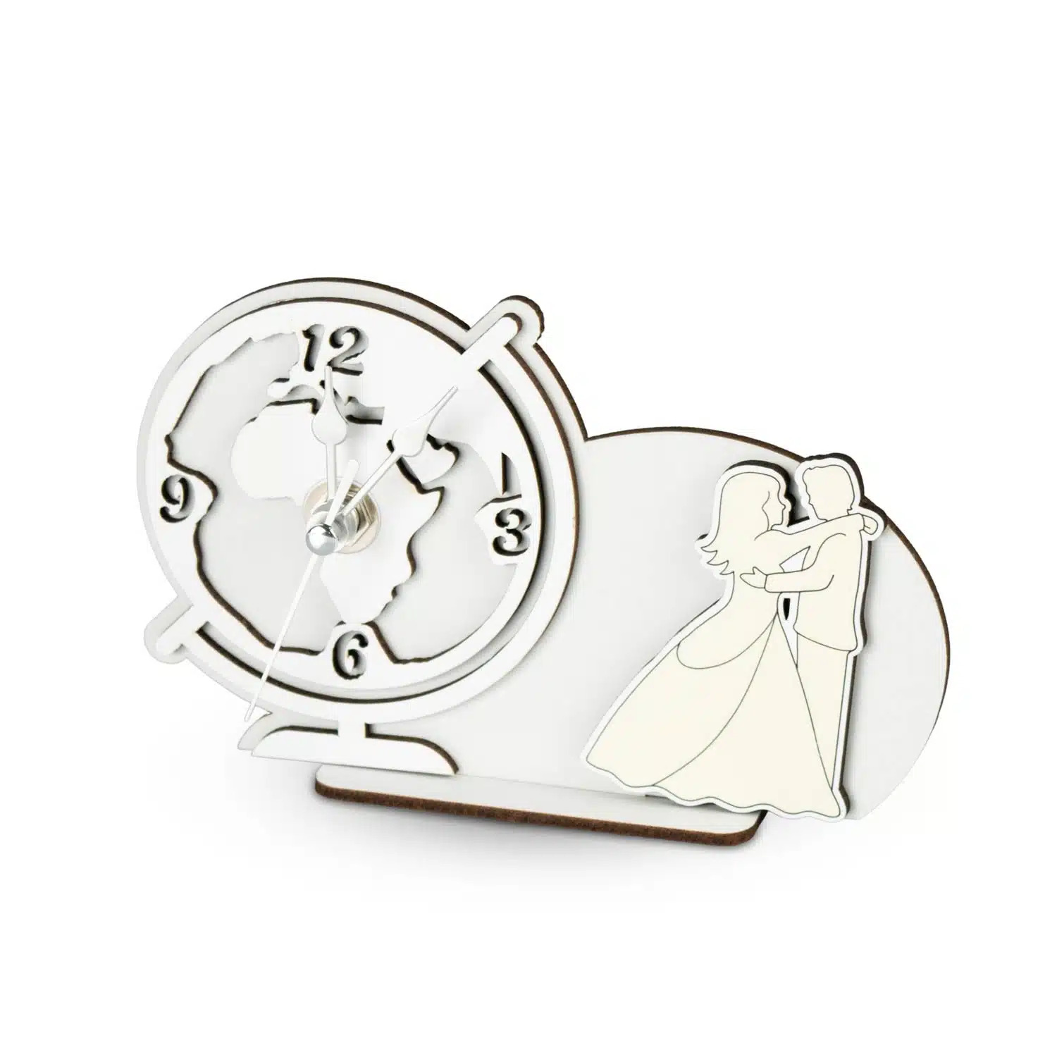 Bomboniere Orologio Mappamondo con applicazione Matrimonio coppia sposi in Legno, Made in Italy