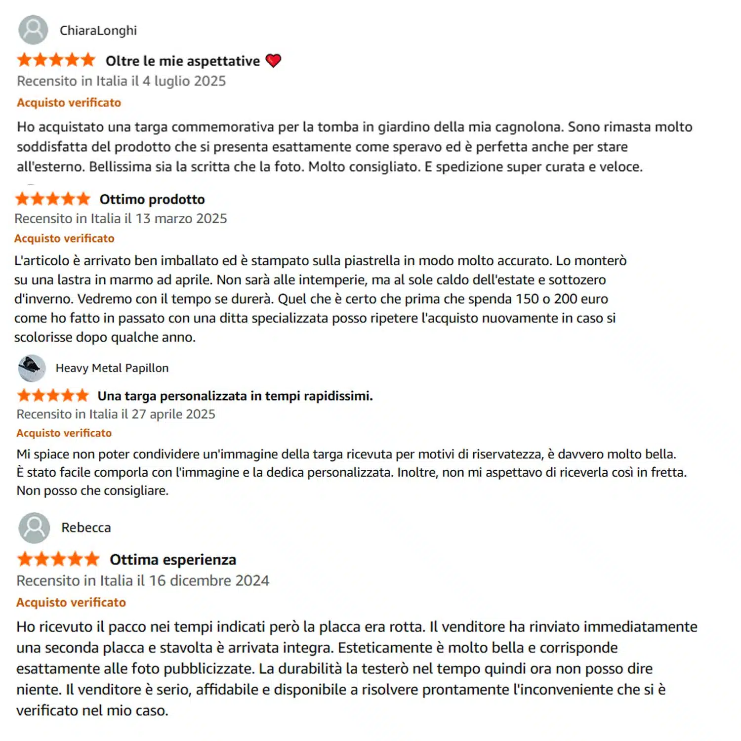 Grazie ai migliori macchinari presenti sul mercato, riusciamo a stampare immagini in altissima risoluzione rendendo la targa unica nel suo genere.